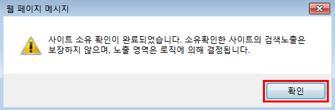 사이트 소유 확인이 완료되었습니다. 소유 확인한 사이트의 검색노출은 보장하지 않으며 노출 영역은 로직에 의해 결정됩니다. 라는 웹 페이지 메시지가 뜨면 확인버튼을 눌러주면 내 티스토리 블로그가 네이버 서치 어드바이저에 등록이 완료되었습니다.