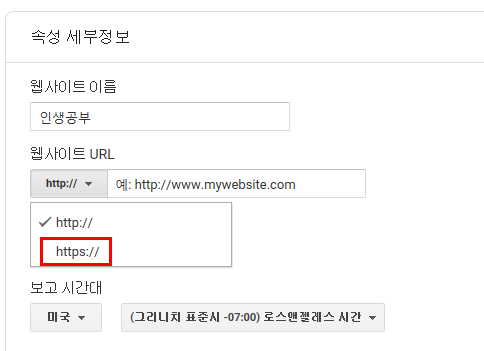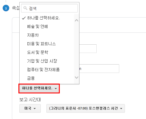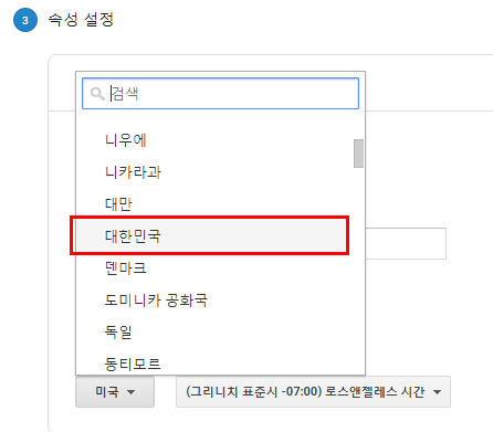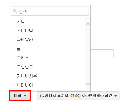아래에 미국 버튼을 눌러서 애널리틱스 보고시간대를 선택해줍니다.