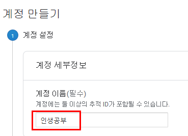 로그인을 하면 계정 만들기 화면리 뜨는데 우선 계정 설정을 해주어야합니다. 계정 이름은 본인이 원하는 이름을 적으셔도되고, 저 같은 경우는 추후에 헷갈리지 않게 하기위해서 제 티스토리 블로그 이름인 인생공부로 정했습니다.