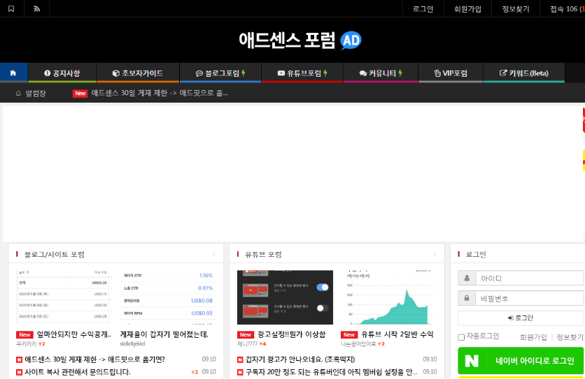 애드센스 포럼, 블로그 티스토리 사이트 및 유튜브 애드센스 사용자 모임 커뮤니티 포럼