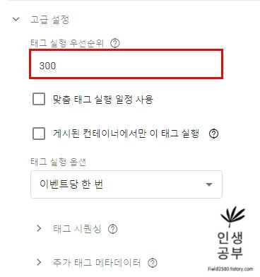 고급설정에서 태그 실행 우선순위에 300을 적어줍니다.