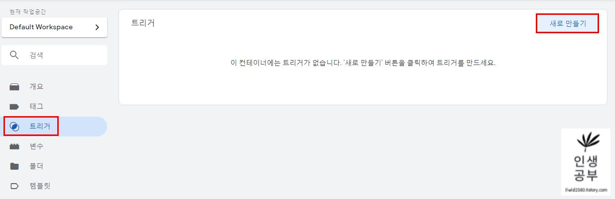 좌측 메뉴에 트리거 버튼을 누른 후 새로 만들기 버튼을 눌러줍니다.