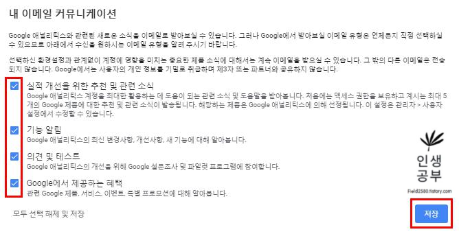 모든 항목을 체크해준 후 저장 버튼을 눌러줍니다.