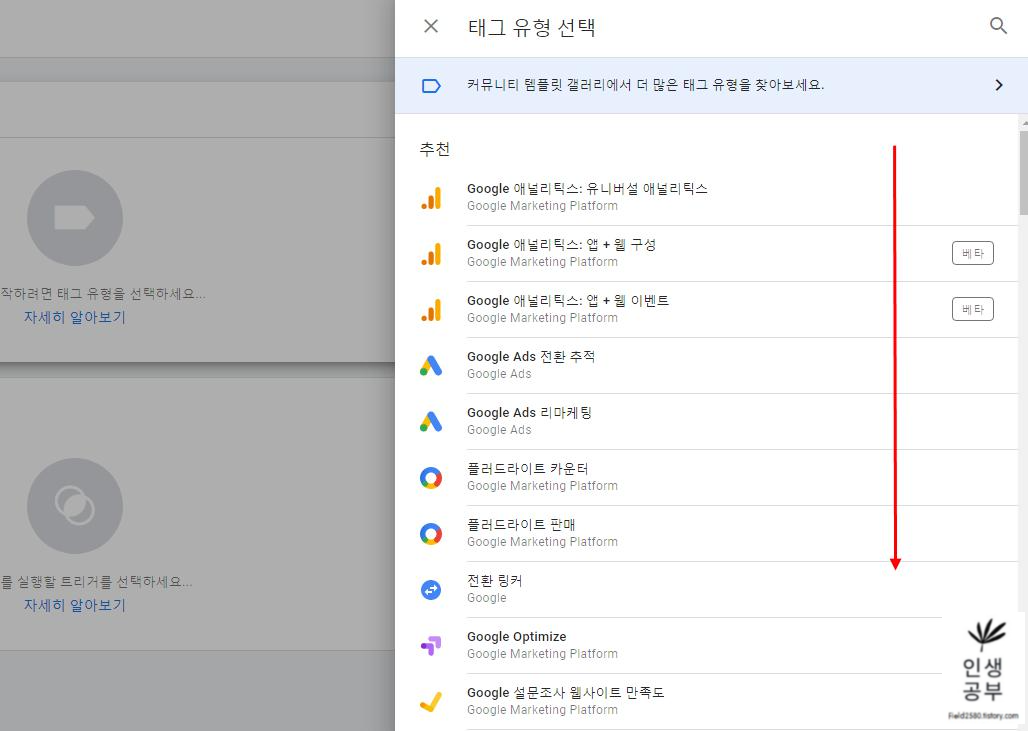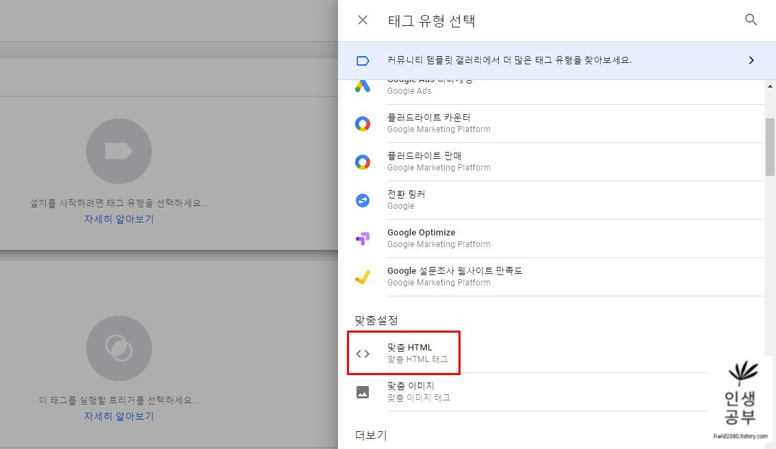 태그 유형선택 화면이 나오면 아래로 스크롤을 내려줍니다.