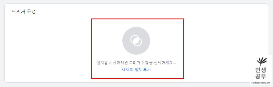 트리거 구성 화면이 뜨고 트리거 유형을 선택해야합니다. 빨간색 네모칸 안에 아무곳이나 눌러주시면됩니다.