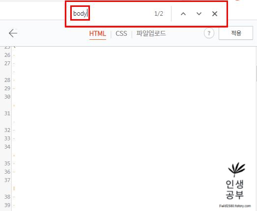 그 후 html 편집에서 ctrl + f 를 눌러서 body라고 눌러줍니다.