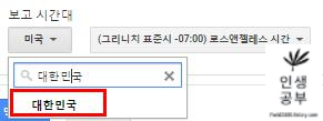 보고 시간대는 한국으로 맞춰줘여합니다. 기본은 미국으로 되어있으니 미국 버튼을 눌러줍니다.