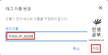 태그 이름 변경이 뜨면 PUSH_IP_ADDR 이라고 입력한 후 저장버튼을 눌러줍니다.