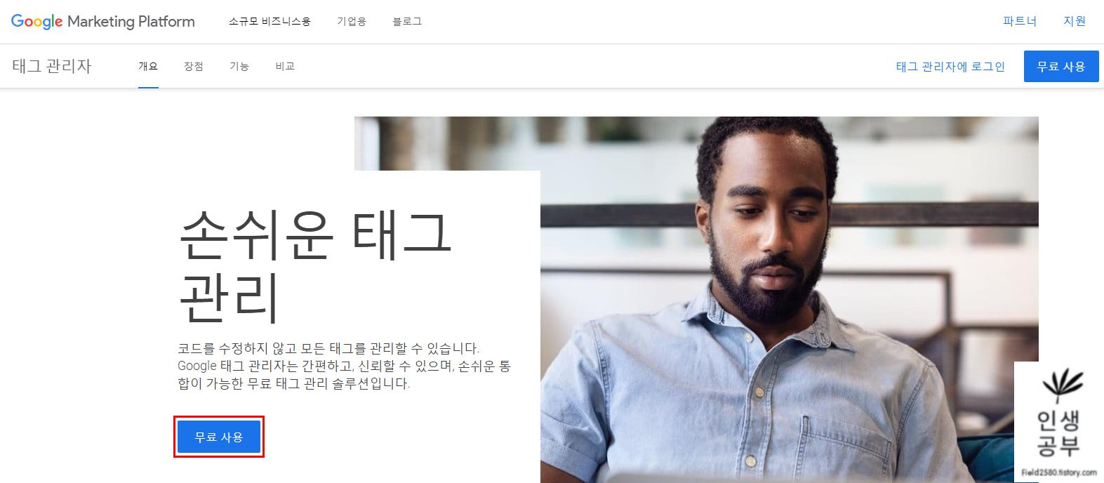 구글 마케팅 플래폼으로 접속해줍니다. 구글 로그인한 후 무료 사용 버튼을 눌러줍니다.