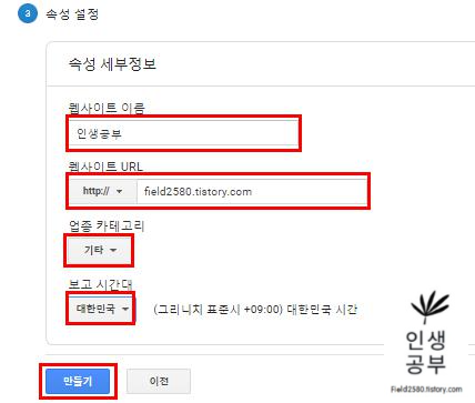 아래에 속성 설정에 웹사이트 이름과 웹서이트 URL에 http://로 되어있으나 https://로 바꾸셔야합니다. 그 후에 블로그 주소를 적으시면 됩니다.