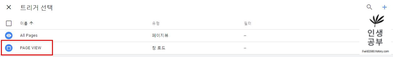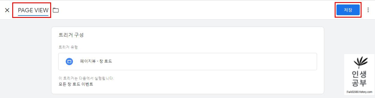 트리거 선택에서 PAGE VIEW를 선택해줍니다.