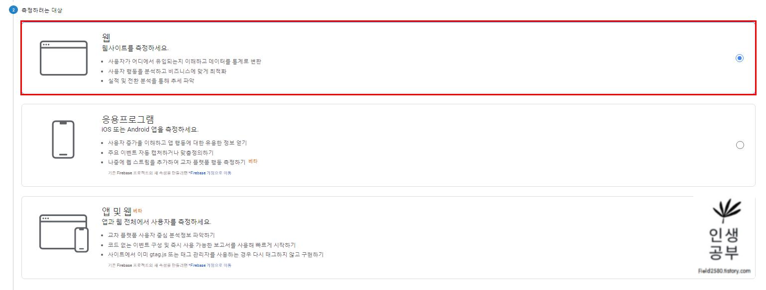 측정하려는 대상은 블로그이기 때문에 웹을 눌러주시면됩니다.