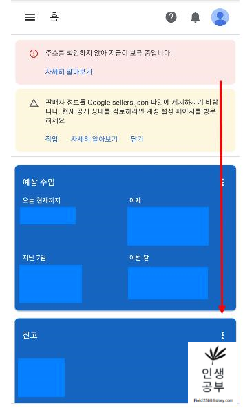 구글 애드센스에 접속한 후 메인 화면에서 아래로 스크롤을 내려줍니다.