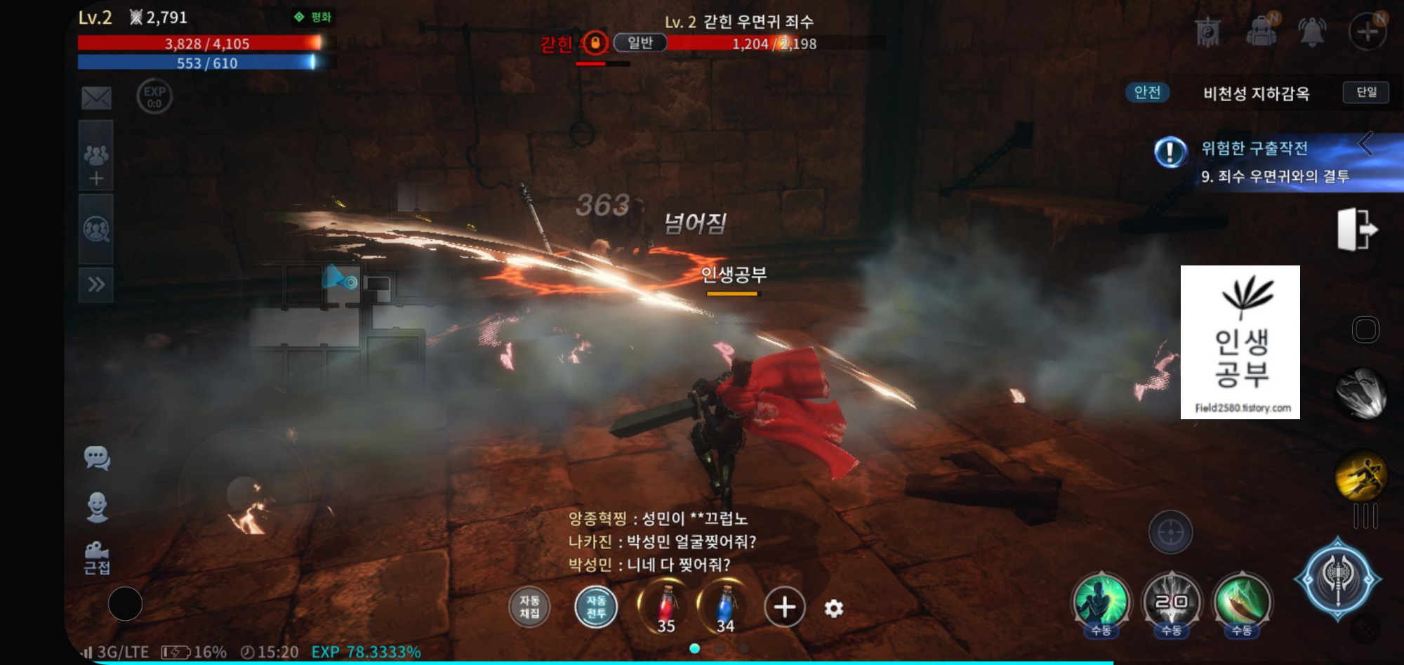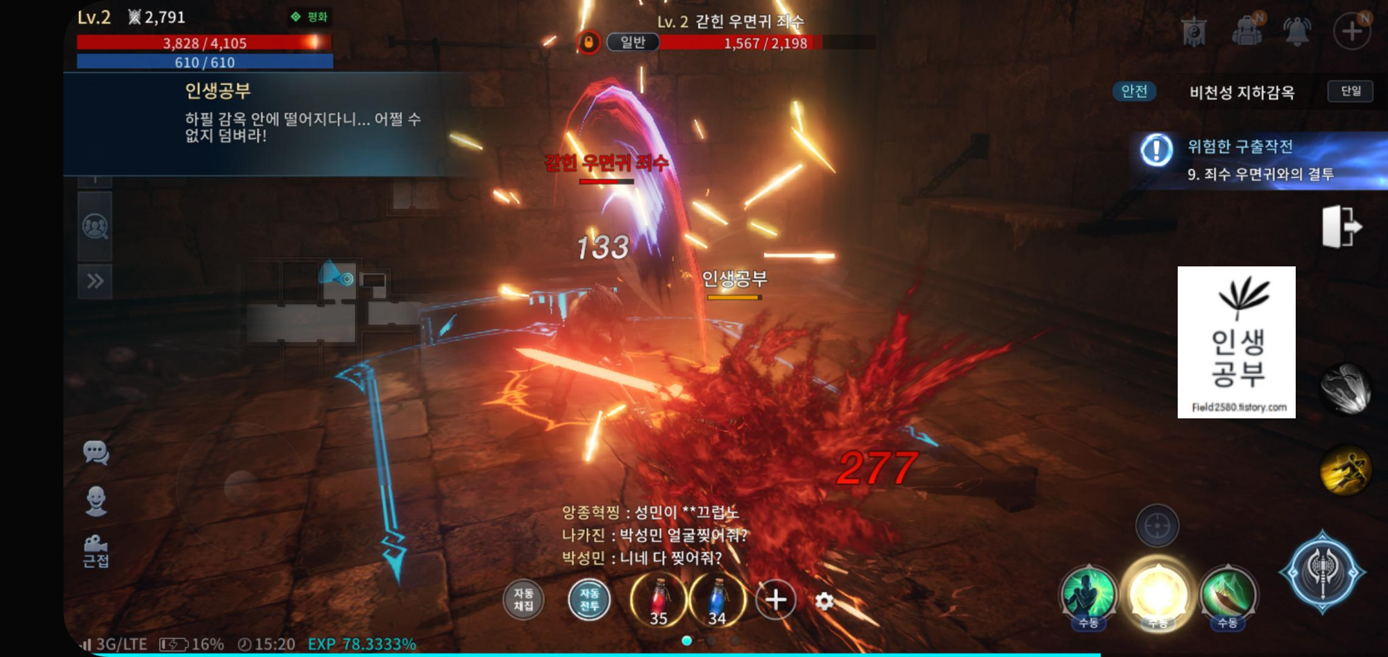 타격감이 캡쳐본으로는 잘 안나오지만 막상 진행해보면 흥미진진하게 게임을 진행 하실 수 있습니다.
