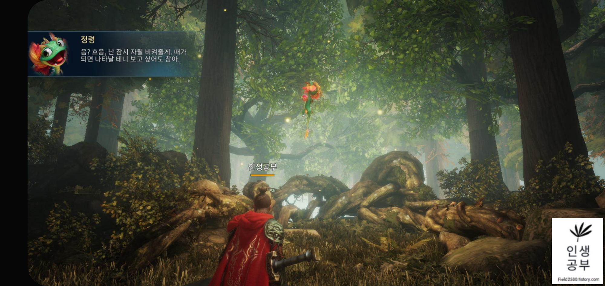 정령이라고 도마뱀 같이 생긴게 나오는데 아무래도 처음 게임을 시작하니깐 도우미 같은 존재입니다. 간단한 스킬쓰는 방법이나 아이템 사용방법 등을 알려주네요.