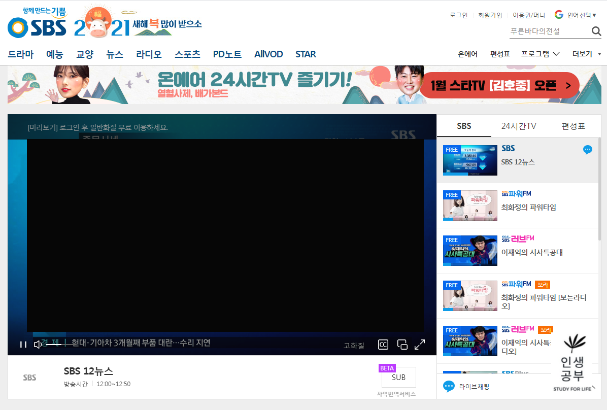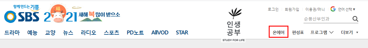 SBS 홈페이지에 가입한 후, 로그인하여 SBS 온에어로 실시간 보실 분들은 위의 포스팅을 참고해주시기 바랍니다.