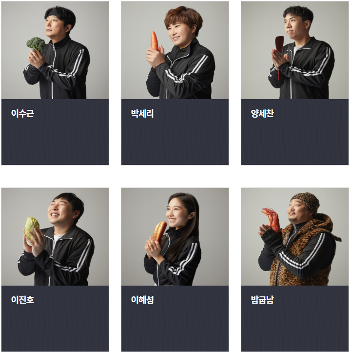 이수근, 이진호, 양세찬이 출연하고, 독특하게 박세리와 밥굽남이 출연하네요. 이혜성은 처음보는 출연자라 누군가해서 검색해봤는데, KBS아나운서 출신이였네요. 서울대학교 경영학과를 졸업하고 현재는 전현무와 연인사이네요. 골프선수 박세리는 평소 먹는 것을 좋아하는 모습을 티비에서 많이 보여주었는데, 음식을 먹지 못하면 어떠한 반응을 보여줄지 궁금합니다. 밥굽남의 경우는 산적TV 밥굽남 채널을 운영중인 유튜버입니다. 각종 음식들을 맛있게 먹는 모습을 보여주며 100만이 넘는 구독자를 보유하고 있는 인기 유튜버입니다. 이번에 처음으로 예능에 출연하여 아주 기대됩니다.