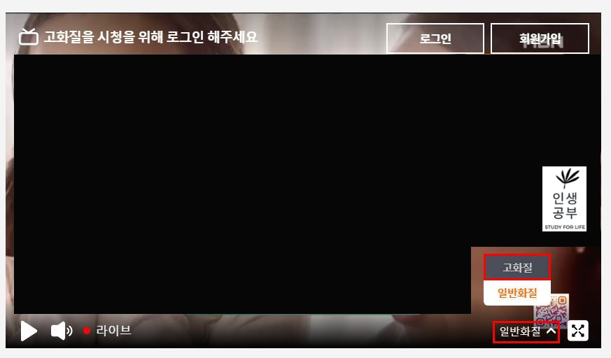 고화질로 보고 싶으신 분들은 로그인 해주셔야 볼 수 있습니다. 로그인 없이 보려고 하니 화면 상단에 있는 로그인/회원가입, 고화질을 시청을 위해 로그인해 주세요. 라는 글자가 몹시 거슬리네요. 로그인하면 모두 사라지니 회원가입한 후, 로그인해서 보실분들은 아래 포스팅한 링크를 참고해주세요.