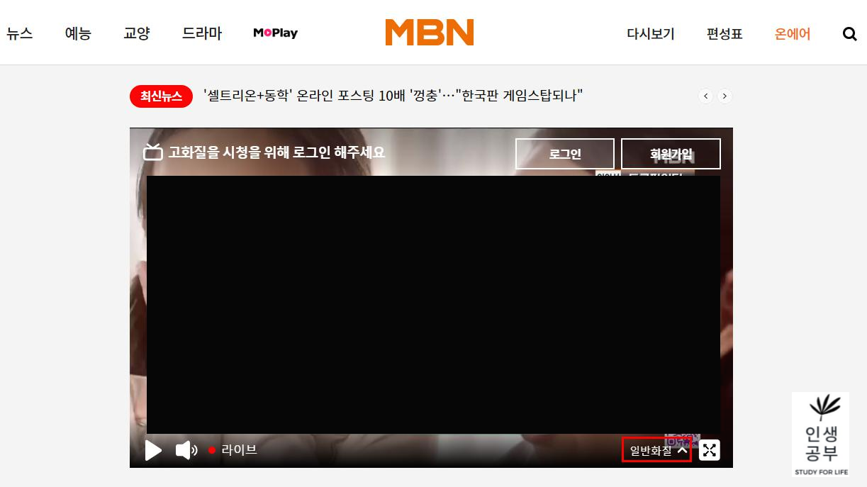 MBN 실시간 영상을 고화질로 MBN 회원가입을 통해서 보실 분들은 위의 링크를 참고해주시기 바랍니다.