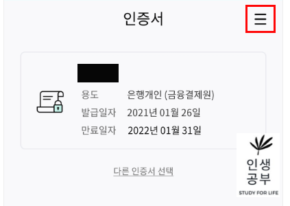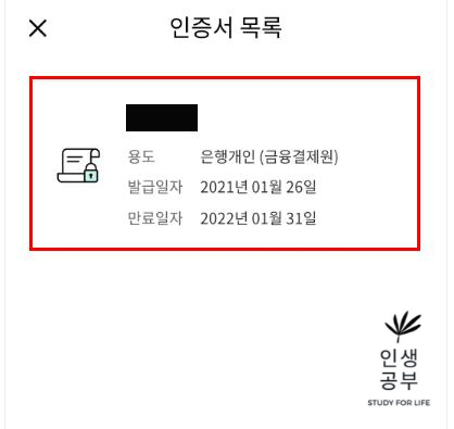 인증서 목록이 뜨면 인증서 버튼을 눌러주세요. 위 화면은 뜰 수도 있고 뜨지 않을 수도 있습니다.
